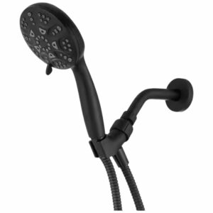 BWE A-9H-7803-B 6-Spray 4.3 in. Wall Mount Handheld Shower Head 1.8 GPM Extra Long Stainless Steel Hose and Adjustable Bracket in Black