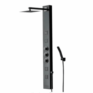 BWE YTP16-BLACK 4-Jet Rainfall Shower Panel System with Rainfall Shower Head and Shower Wand in Black