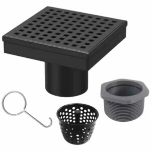 RELN FD0402SQBK 4 in. x 4 in. Matte Black Square Shower Drain with Square Pattern Drain Cover