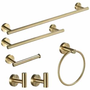YSQCAR GJ-704LSJ 6-Piece Bath Hardware Set with Towel Ring Toilet Paper Holder Towel Hook and Towel Bar in Brushed Gold