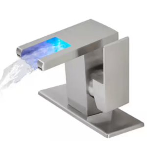 FLG CC-0186-BN Single Handle Single Hole LED Bathroom Faucet with Deckplate Included Waterfall Bathroom Sink Faucets in Brushed Nickel