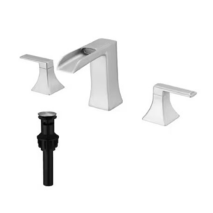 FLG CC-0202-BN 8 in. Widespread Double Handle Bathroom Faucet with Pop-up Drain 3 Hole Brass Bathroom Sink Basin Taps in Brushed Nickel