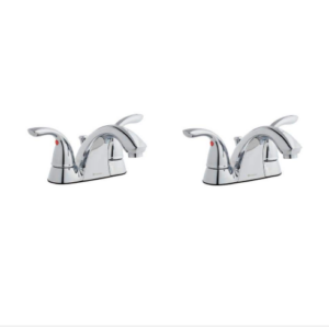 Glacier Bay 1006 878 806 Builders 4 in. Centerset 2-Handle Low-Arc Bathroom Faucet in Polished Chrome (2-Pack), Grey (1006 878 808)