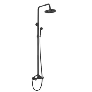 BWE A-98015-B 2-Spray Outdoor Wall Bar Shower Kit 8 in. Round Rain Shower Head with Hand Shower and 2 Cross Knobs in Matte Black