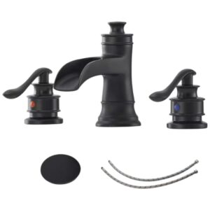 BWE A-96556-S-Black 8 in. Waterfall Widespread 2-Handle Bathroom Faucet With Pop-up Drain Assembly in Spot Resist Matte Black