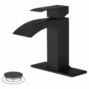 BWE A-96077-B-3 Waterfall Single Hole Single-Handle Low-Arc Bathroom Sink Faucet With Pop-up Drain Assembly In Matte Black