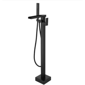 BWE A-97007-Black Single-Handle Freestanding Floor Mount Roman Tub Faucet Bathtub Filler with Hand Shower in Matte Black