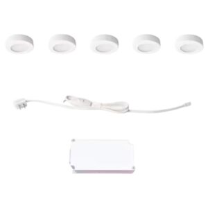 22335NKITJ-WH Plug-In 5-Light White Dimmable Integrated LED Under Cabinet Puck Light with J-box