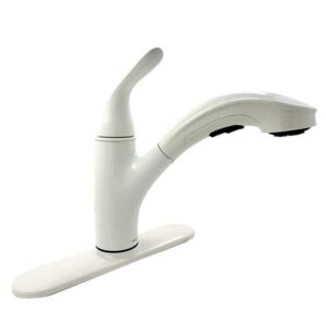 87557W Single-Handle Pull-Out Sprayer Kitchen Faucet with High-Pressure Spray in White