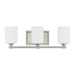 Hampton Bay DS17678C Darlington 20.88 in. 3-Light Brushed Nickel Vanity Light with Frosted Opal Glass Shades