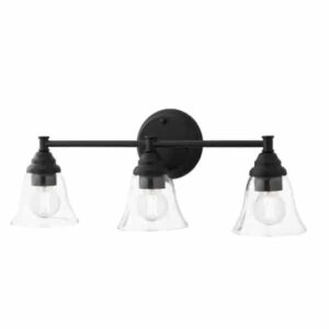 Hampton Bay HB3677-43 23.5 in. Marsden 3-Light Matte Black Transitional Bathroom Vanity Light with Clear Glass Shades