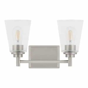 Hampton Bay HB3680-35 15 in. Wakefield 2-Light Brushed Nickel Modern Bathroom Vanity Light with Clear Glass Shades