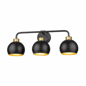HDV9026-3 BK+BR 24 in. 3-Light Black and Brushed Brass Vanity Light with Metal Shade for Bathroom