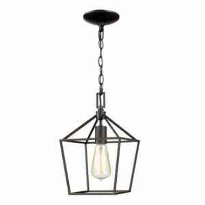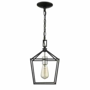 Home Decorators Collection 16201-BK-CR Weyburn 1-Light Caged Black and Polished Chrome Mini Pendant, Farmhouse Lantern Hanging Light, Kitchen Pendant Lighting