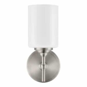 Home Decorators Collection 39342-HBW Ayelen 1-Light Brushed Nickel Opal White Glass Indoor Wall Sconce, Modern Wall Light