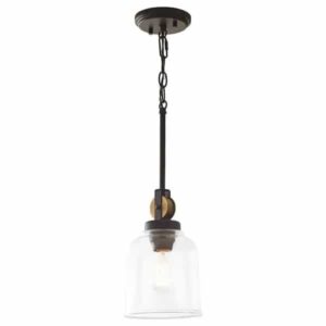 Home Decorators Collection 7994HDCBBDI Knollwood 7 in. 1-Light Blackened Bronze Industrial Mini Pendant Light with Vintage Brass Accents & Clear Glass Shade