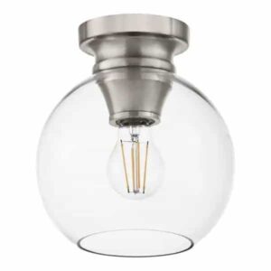 Home Decorators Collection HB1078-35 8 in. Evelyn 1-Light Brushed Nickel Round Flush Mount, Industrial Modern Ceiling Light with Clear Glass Shade