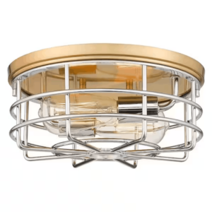 JAZAVA HD5HLT65F BG+CH 11.4 in. 2-Light Living Room Hallway Gold and Chrome Flush Mount Ceiling Light