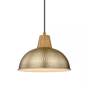 JAZAVA HD4FG58MIL BG 10.2 in. 1-Light Vintage Brass Pendant Light Fixtures With Hammered Metal Shade for Kitchen Island (1-Pack)