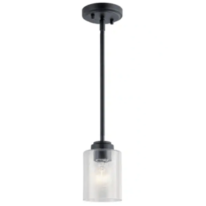 KICHLER 44032BK Winslow 1-Light Black Contemporary Shaded Kitchen Mini Pendant Hanging Light with Clear Seeded Glass