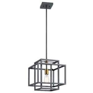 KICHLER 43982BK Taubert 1-Light Black/Natural Brass Mid-Century Modern Foyer Pendant Hanging Light