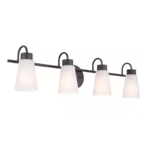 KICHLER 55127OZ Erma 32.5 in. 4-Light Olde Bronze Traditional Bathroom Vanity Light with Satin Etched Glass Shades