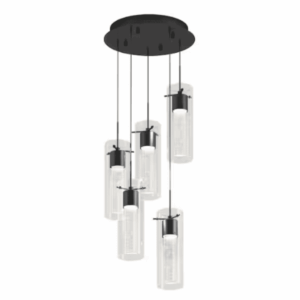 Artika OME64B-BL Essence 29-Watts 5-Lights Matte Black Integrated LED Pendant Light with Bubble Glass Shade
