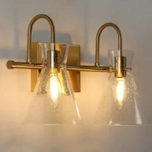 Uolfin 62808UAYQYQ30W2 Modern Gold Bathroom Vanity Light, 2-Light Bell Minimalist Powder Wall Sconce Light with Seeded Glass Shades