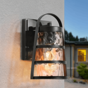 Uolfin 628D7FBR7BN4258 Icy 1-Light Black Non- Solar Outdoor Wall Lantern Sconce with Cylinder Water Glass Shade