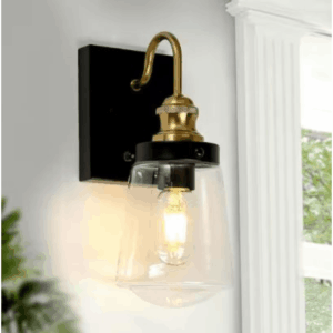 Uolfin 67UJ6VHD24315Y3 Modern Gold Wall Sconce, 1-Light Bathroom Bell Wall Light with Clear Cylinder Glass Shade for Kitchen and Foyer