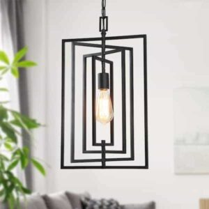Uolfin N6JFV3HD23606AE Modern Black Geometric Pendant Light, Fenmore 1-Light Farmhouse Rectangle Industrial Dining Room Chandelier Light
