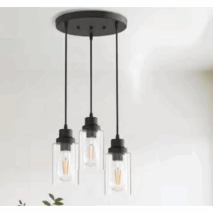 YANSUN H-DZ133 3-Light Black Vintage Cluster Hanging Ceiling light Fixture Pendant with Clear Glass Shade for Kitchen Dining Room