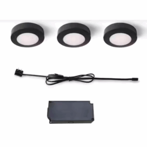 Commercial Electric 22343KITJ5-BK Plug-In 3-Light Black Dimmable Color Changing Integrated LED 5CCT Under Cabinet Puck Light with J-box