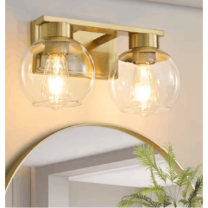 Deyidn D1698-2G 13.7 in. 2-Light Gold Bathroom Vanity Light with Clear Glass Shades, Bulbs not Included