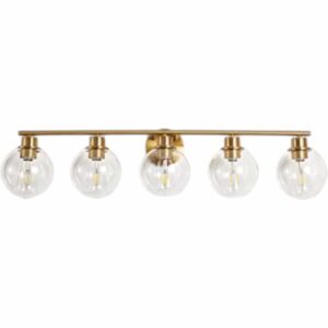 Deyidn H-1746-5G Modern 37.4 in. 5-Light Gold Bathroom Vanity Light Interior Powder Room LED Lighting with Clear Globe Shades
