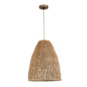 ELE Light & Decor GL001-D40N Lisbet 1-Light Handmade Airy Rattan Pendant Light in Brass with Shade Light Over Dining Table and Kitchen Island