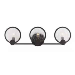 Generation Lighting 4001903-112 Cooper 22 in. 3-Light Midnight Black Vanity Light with Cracked Clear Disk Glass Shades