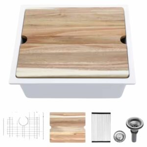 LORDEAR L-SYS2118W 21 in. Undermount Bar Sink Single Bowl Quartz Composite Workstation Kitchen Sink in White-21 in. x 18 in. x 10 in.