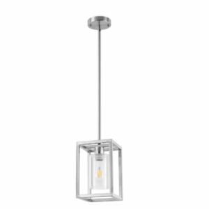 YANSUN HA-CX08901AA-11 1-Light Brushed Nickel Kitchen Island Pendant Light with Down Rod Hanging Light Fixture with Clear Glass Shade
