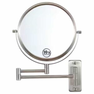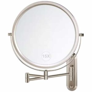 GQB HD-WML85-N10X 8.5 in. W x 8.5 in. H Round 1x/15x Magnification,Swing Arms Wall Mount Bathroom Makeup Mirror in Brushed Nickel