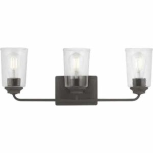 Hampton Bay 1016HBMBZDI Evangeline 23 in. 3-Light Modern Bronze Farmhouse Bathroom Vanity Light with Clear Seeded Glass Shades