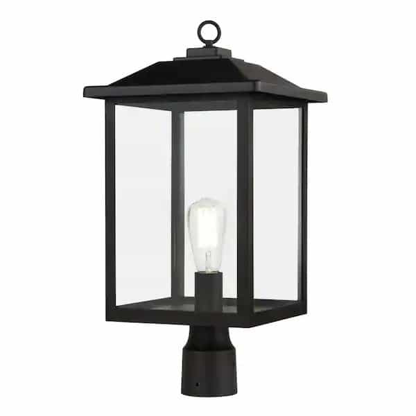 Create an inviting exterior with this decorative lantern design. This post light brings depth and functionality with a timeless frame that compliments every style of home. Its black finish provides warmth and elegance and its clear glass provides abundant light.