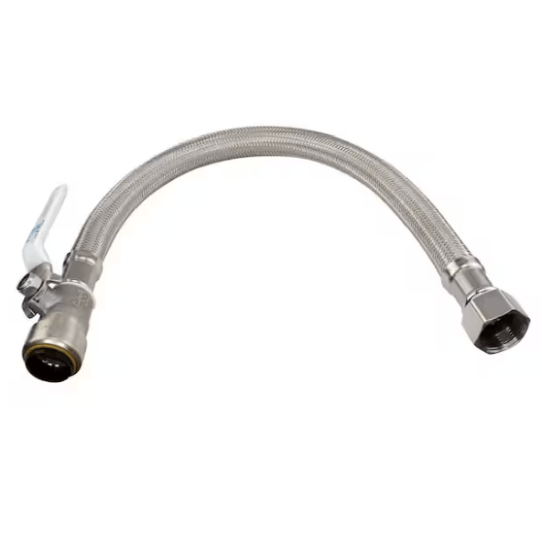 Everbilt EBBS12P34F18BV 1/2 in. PTC x 3/4 in. FIP x 18 in. Braided Stainless Steel Water Heater Connector with Ball Valve