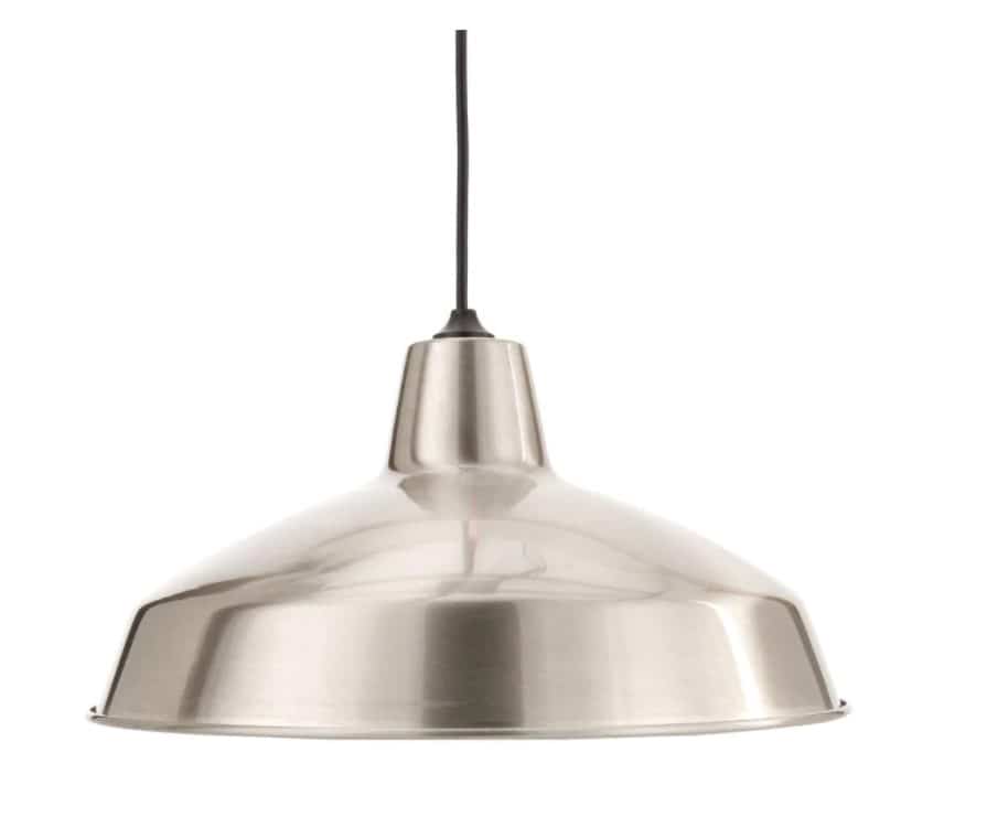 The Hampton Bay 1-Light Brushed Nickel Warehouse Pendant is ideal for a wide variety of spaces and decor. Featuring an attractive brushed nickel finish, this functional and stylish pendant will provide plenty of bright and even illumination in living rooms, garages, dens and wherever your imagination leads you. Easy to maintain and easy to install, pair with other brushed nickel pieces from Hampton Bay for a custom and polished look.