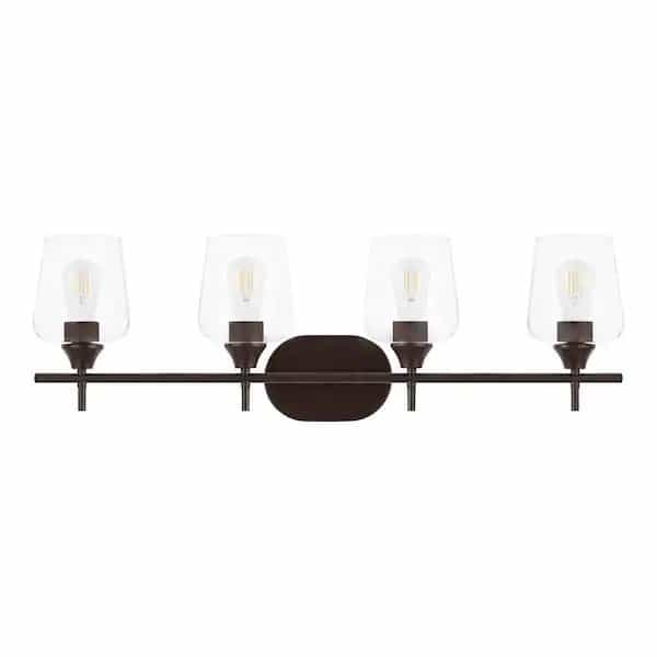 This 4-Light bronze Vanity Light Bar enhance your urban apartment, cottage or farmhouse in timeless style. The design of clean lines, bell glass shade, oval plate provide a natural and decorative look to your home whether you prefer traditional or transitional decor. Updating the lighting in your home is the most effective way to accomplish a striking, yet simple.