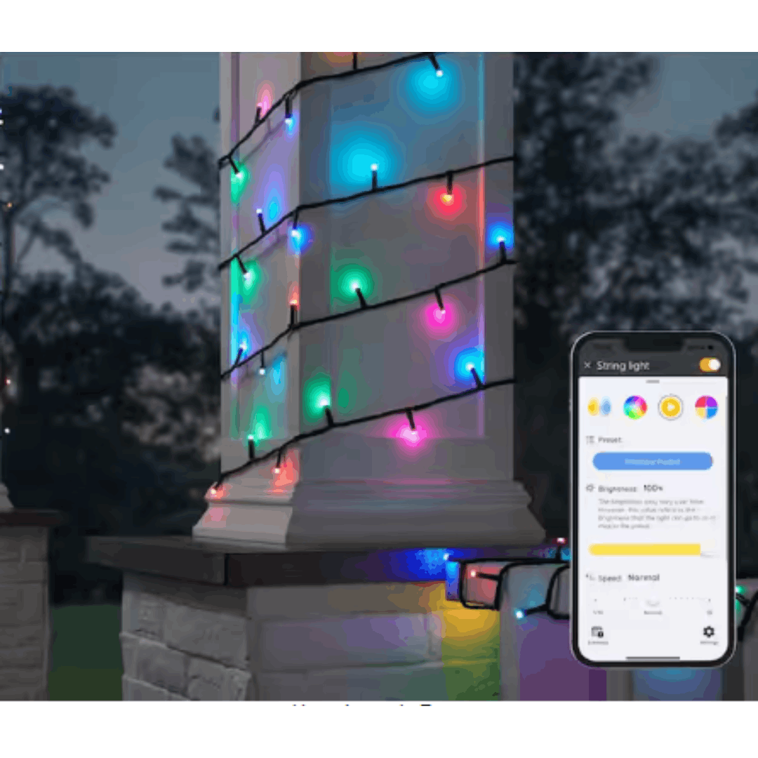Enhance your indoor and outdoor environments with the Hampton Bay Smart 40 ft. Color-Changing Music Sync String Lights, powered by Hubspace. This 100-light string set includes a music-sync party mode that makes lights flash in rhythm with your favorite tunes, perfect for gatherings and special occasions. Control color, brightness, and patterns directly from your device using the intuitive Hubspace app. Choose from a variety of built-in holiday themes or create your own with millions of color options, including warm and cool white. Built with durable, weather-resistant construction, the 40 ft. light string can be linked with a second set for extended coverage and impact.