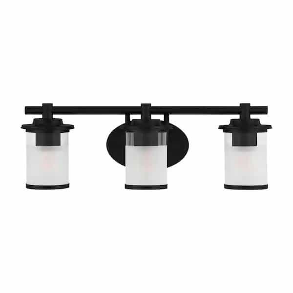 Bring new light into your bathroom with this Hampton Bay Truitt 3-Light Matte Black Bathroom Vanity Light. The matte black finish helps protect the fixture and the partially frosted glass shades add sophisticated details. This fixture can be mounted up or down.