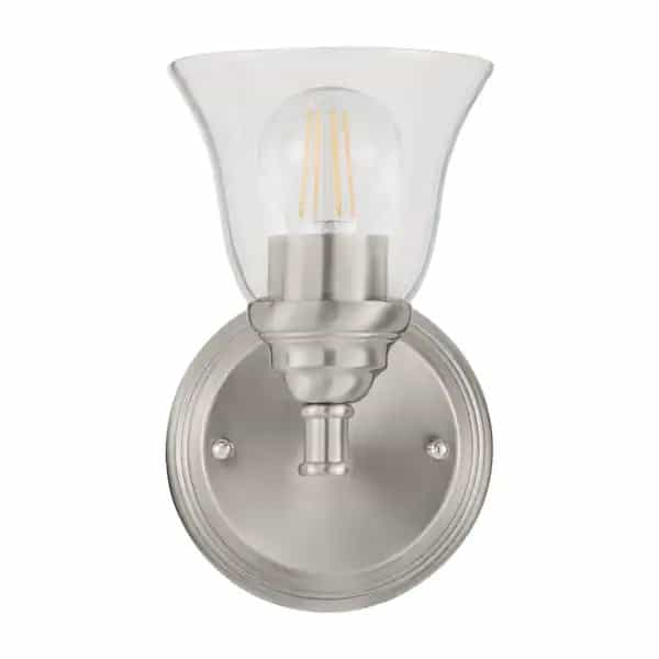 This Marsden Wall Sconce features a casual take on Transitional style with simple lines and a timeless look. These fixtures are built with a protective Brushed Nickel Finish over steel construction to look great and last for-years to come. The clear glass shade adds style and a warm light, they install easily in the up or down position.