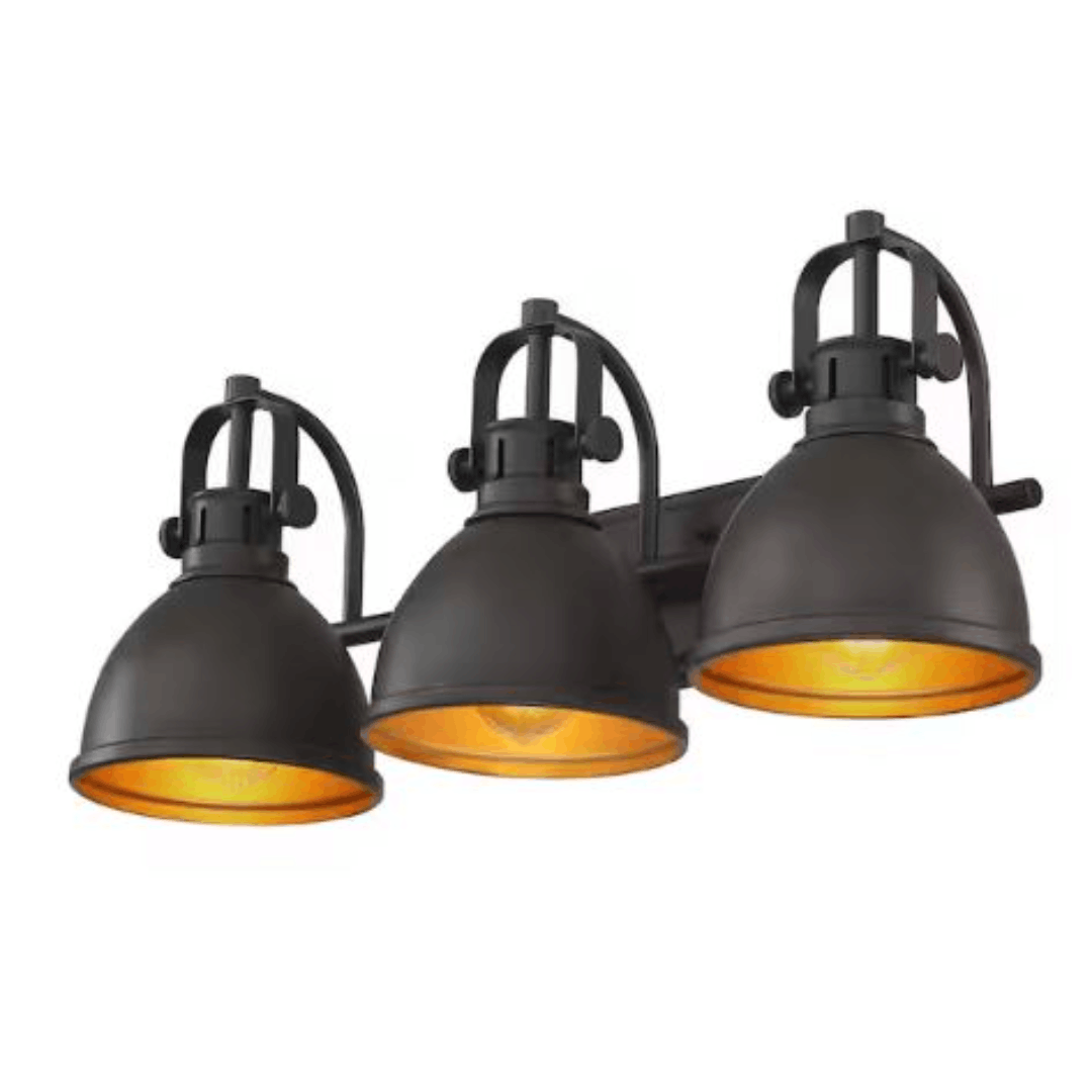 Hukoro NF-41853-BZ 25 in. 3-Light Dark Bronze Finish Vanity Light with Gold Painting Inside