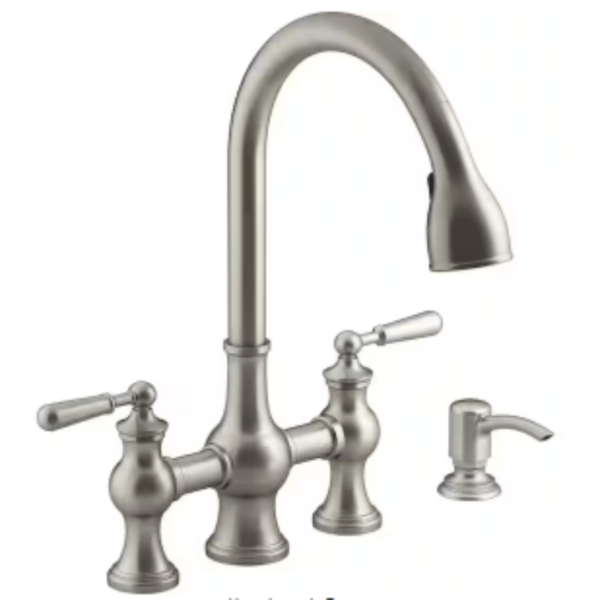 The Capilano Kitchen Faucet reimagines the timeless charm of classic bridge faucet design with modern features and functionality. With authentic detailing inspired by a bygone era, this faucet combines historical influence with contemporary convenience. The high-arch spout provides ample clearance for tall cookware, while the pull-down spray head featuring Sweep® spray simplifies kitchen tasks with a wide, forceful blade of water for efficient cleaning. Durable construction, premium finishes, and innovative technology ensure the Capilano faucet delivers exceptional performance and enduring style.